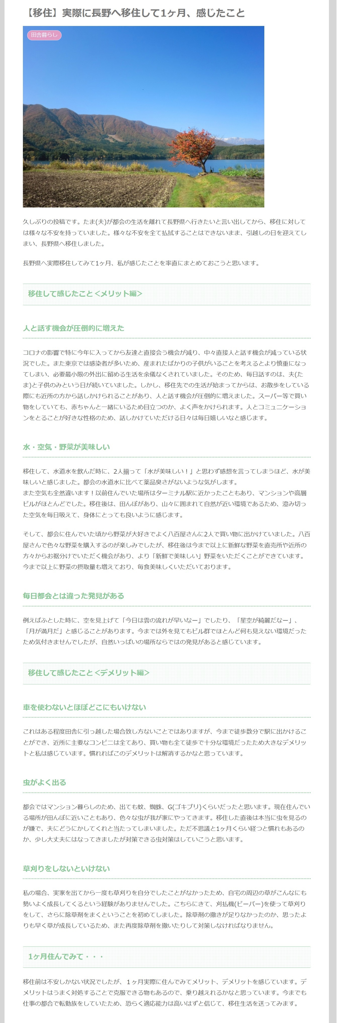 【移住】実際に長野へ移住して1ヶ月、感じたこと