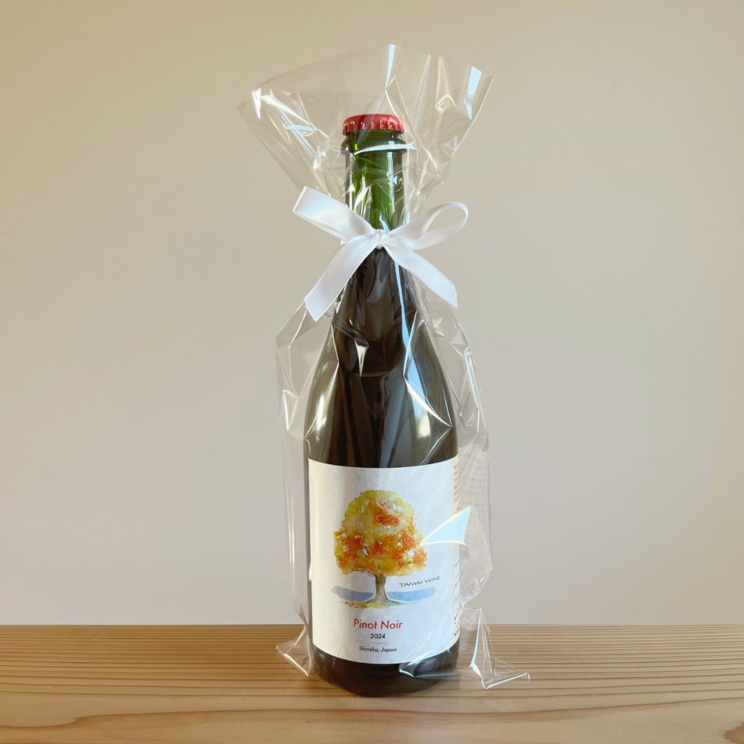 ワインを透明な袋に入れリボン(白色のみ)をお付けいたします。